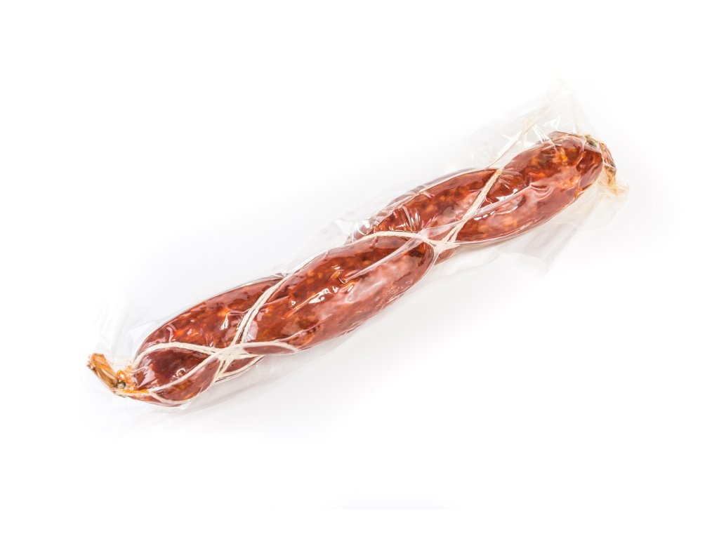 Další informace: Alergen: hořčice. Bez lepku a bez laktózy. Na 100 g výrobku bylo použito 162 g masa. Masný výrobek trvanlivý fermentovaný. Nejedlé střívko. Hmotnost 350 g.